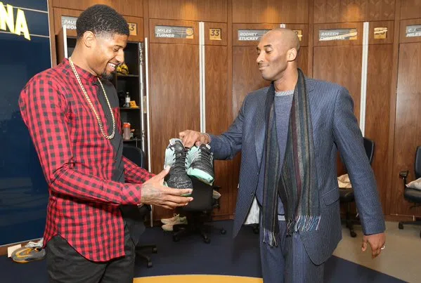The LA Laker gifted the shoes to PG13 after George, who scored 24 points, led the Indiana Pacers past Kobe and Lakers 89-87.