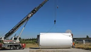 FRESNO (KMJ) — Drivers traveling into Fresno on Highway 99 are now able to see one of the first physical signs of the Fresno Aquarium project. The 35,000 gallon fire protection water tank is now in place on a patch of land just north of Herndon Avenue.