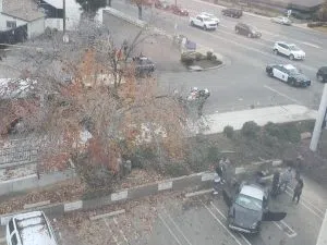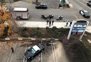 KMJ’s Newsman Aaron Abeytia, and others ran outside, we called 9-1-1, he learned that the accident happened as an SUV and a Porsche collided.