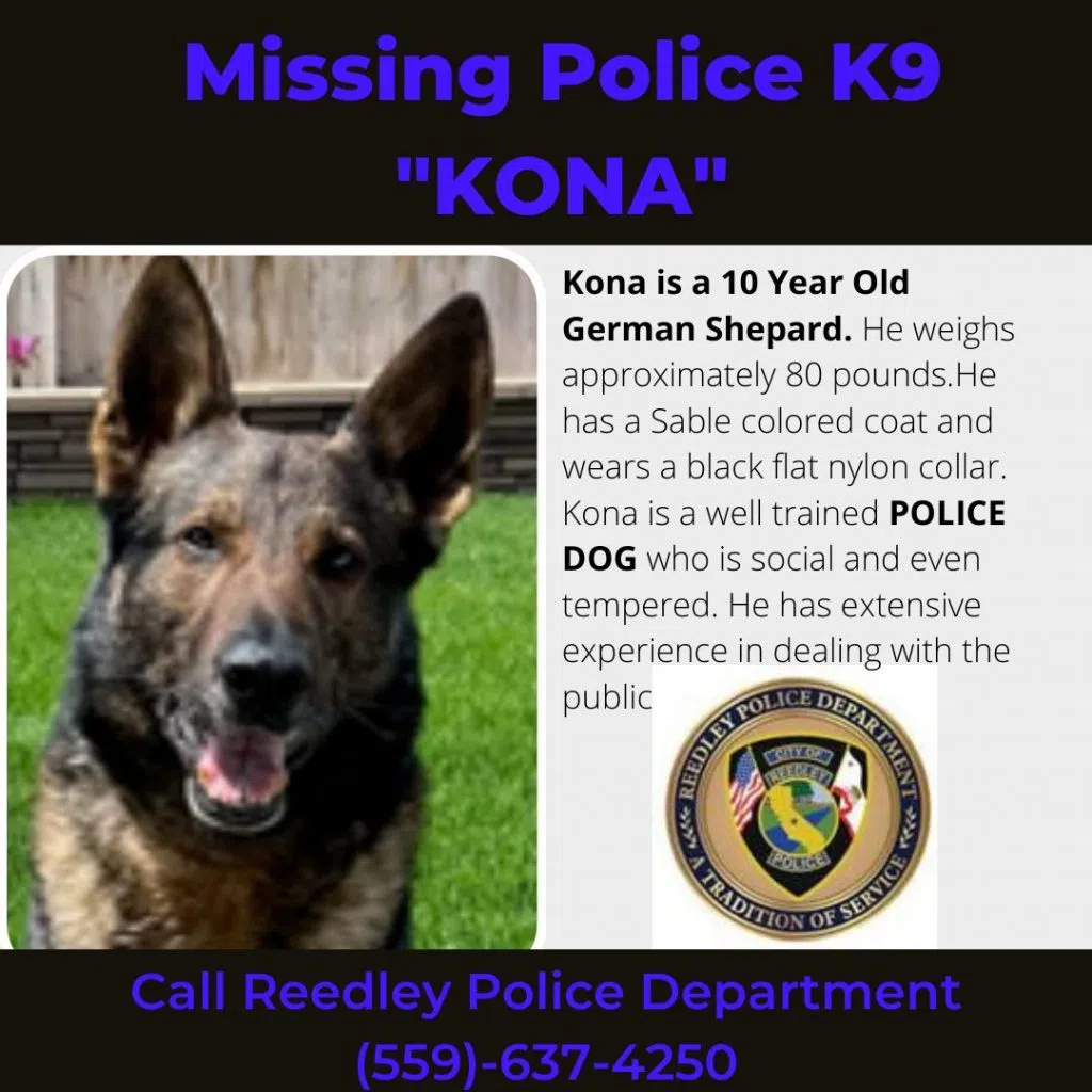 REEDLEY, CA (KMJ) – There’s now a $2,000 reward for information leading to the safe return of missing K9 Kona.