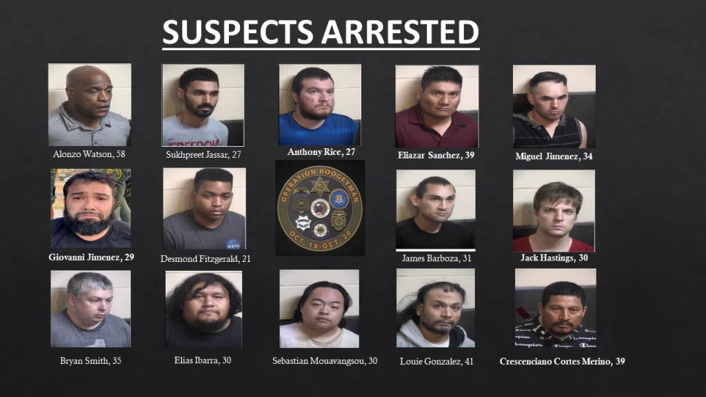 Operation Boogeyman remains an ongoing investigation and more arrests could be made. There is a possibility that the suspects in this case victimized other people who have never reported it. If you have any additional information about the suspects contacted during this operation, please report it to the Sheriff’s Office at (559) 600-3111, Valley Crime Stoppers at (559) 498-7867, www.valleycrimestoppers.org. You will remain anonymous and may be eligible for a cash reward