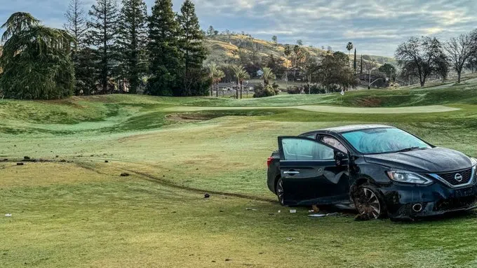 FRESNO, Calif. (KMK/KFSN) — The California Highway Patrol is urging drivers to be safe in the fog after they say the conditions contributed to a car ending up 40 feet out on a golf course.