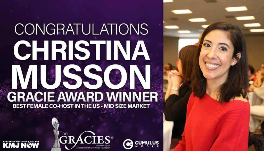 March 28, 2024, FRESNO, CA – For the second consecutive year, KMJ’s Christina Musson has won the prestigious Gracie Award for best female co-host in the US (mid-size market).
