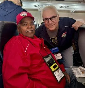 Gabriel wrote on Facebook: We’re flying to Washington D.C., 35,000 feet up over Nebraska. I notice a name on our list of veterans. Sounds somewhat familiar but I’m really not sure why. So I track him down. And — John Aranjo and my late dad were great friends. Both Air Force, both in the same line of work, both lived in Philadelphia. I never knew. This was a moment that just stopped me cold. At first I didn’t even know what to say when he said, “Are you Chris Gabriel’s son?” We’ve barely gotten started …