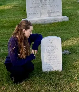 “A sweet, touching moment with Selah at Arlington National Cemetery. This is her great grandfather. We learned he was a remarkable fighter pilot with 20 kills. She never knew him but family is family. Selah gave permission to post. Being here, it’s hard to find the right words.”