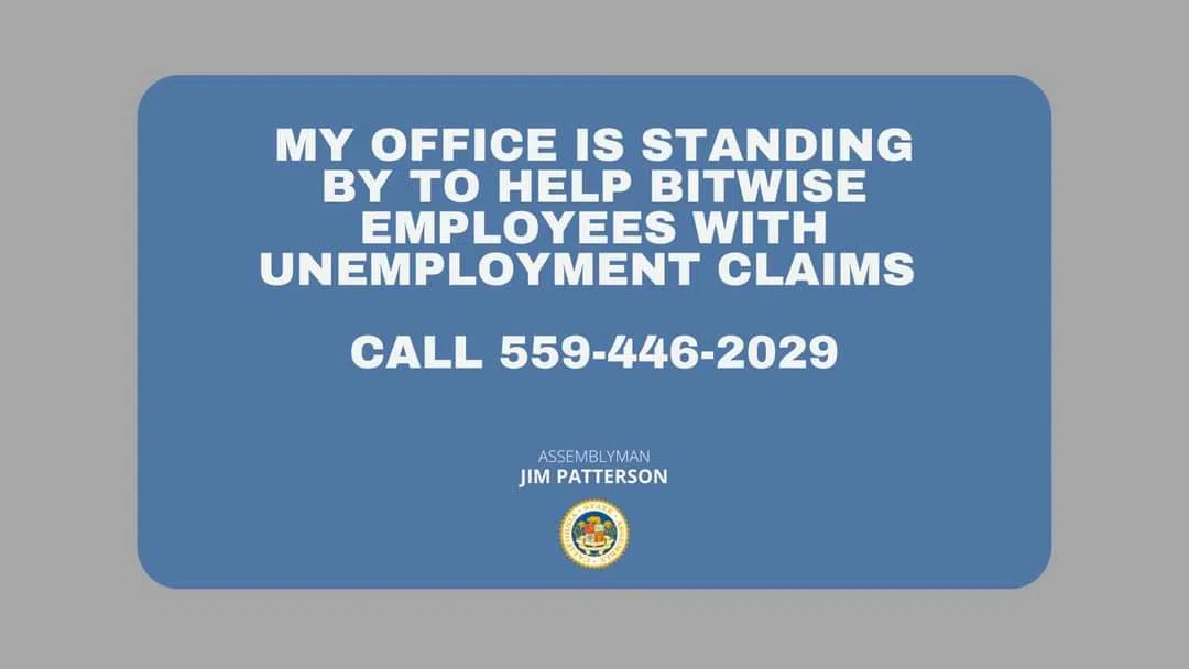 SACRAMENTO - Following the furloughing of hundreds of employees, Assemblyman Jim Patterson wants Bitwise employees to know that his office is available to help walk them through the process of filing ...