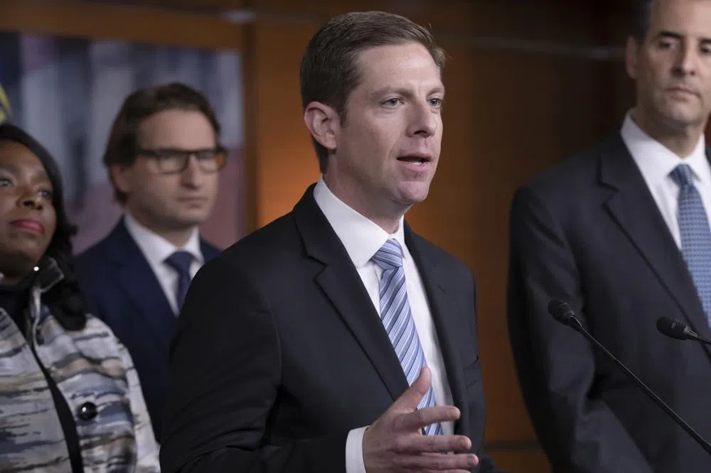 FILE – Rep. Mike Levin, D-Calif., speaks at a news conference at the Capitol in Washington, Nov. 30, 2018. Levin is seeking another term after first capturing the 49th District seat in 2018, and...